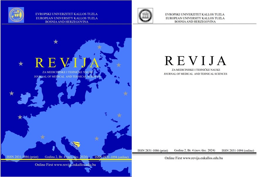 Pred Vama je drugi broj Revije za medicinske i tehničke nauke/Journal of Medical and Technical sciences (Revija). Revija je zvanični recenzirani časopis Evropskog Univerziteta Kallos u Tuzli. Časopis objavljuje uvodnike, stručne i naučne radove, preglede, prikaze bolesnika, lijekova i metoda, prethodna naučna i stručna saopštenja, osvrte, pisma uredništvu, prikaze knjiga i druge priloge iz domena medicinskih i tehničkih nauka, uz uslov da već nisu u istom obliku objavljeni u drugim časopisima ili knjigama. Revija je dostupna u novom dizajnu i online vidljiva. Naš zajednički cilj je da časopis unapređujemo i učinimo prije svega metodološki i tehnički prihvatljivim širem krugu čitaoca i saradnika. Nastojimo, također da časopis svojim kvalitetom bude prihvaćen i etabliran u odgovarajućim bazama, koje prepoznaju i evidentiraju ovakvu vrstu časopisa. Zajedničkim snagama, zahvaljujući kvalitetu i vidljivošću, ispunit ćemo postavljene kriterije. Časopis izlazi dva (2) puta godišnje. Sadržaj iz časopisa može se bez naknade koristiti u nastavne i istraživačke svrhe, samo uz potpuno navođenje izvora. Svaka druga upotreba je zabranjena bez izričitog pisanog dopuštenja izdavača.